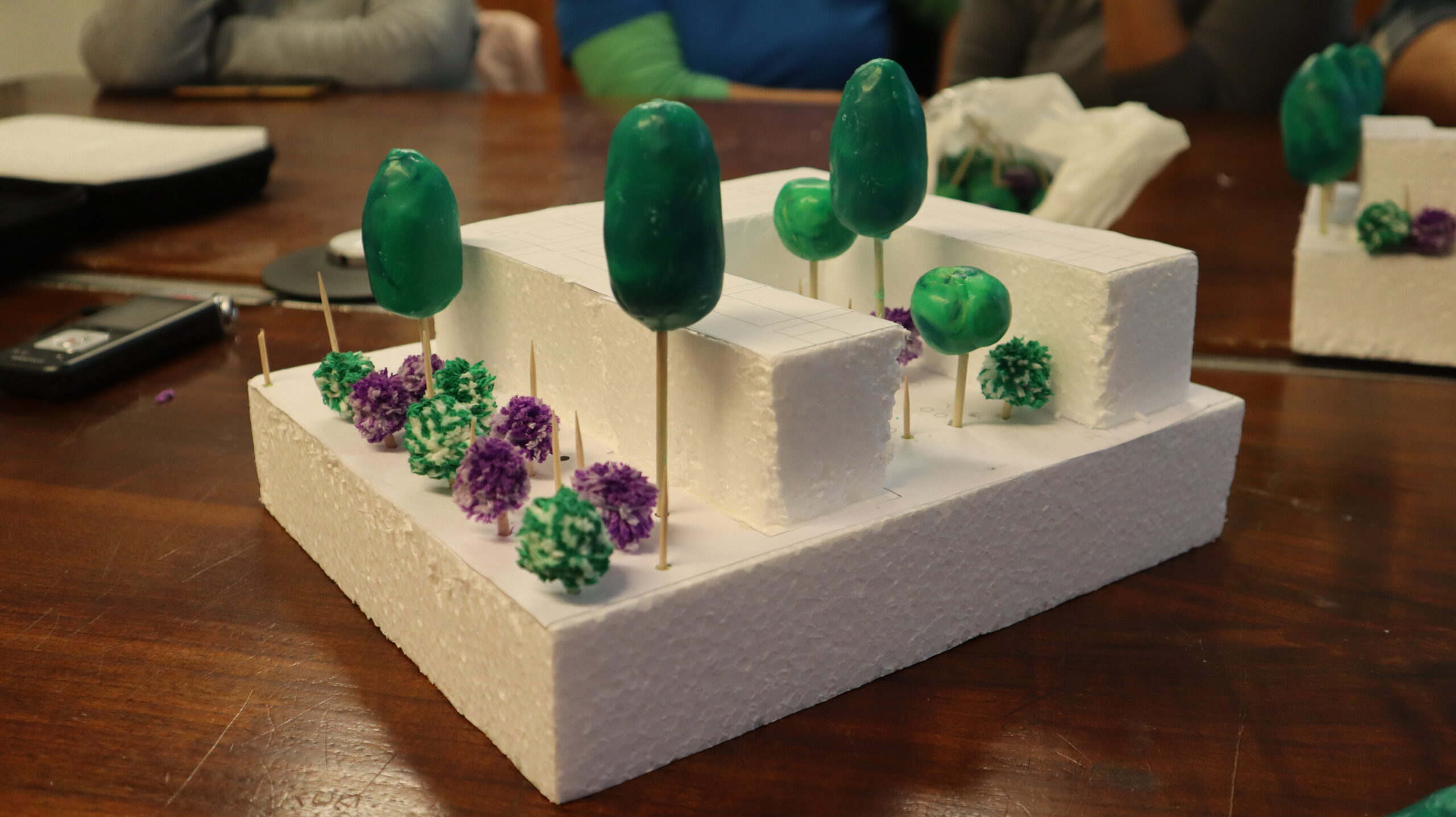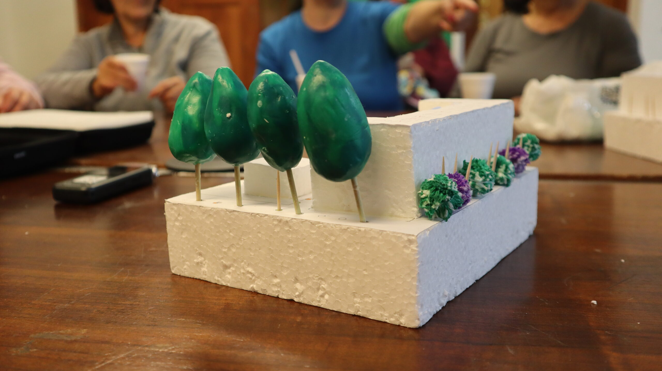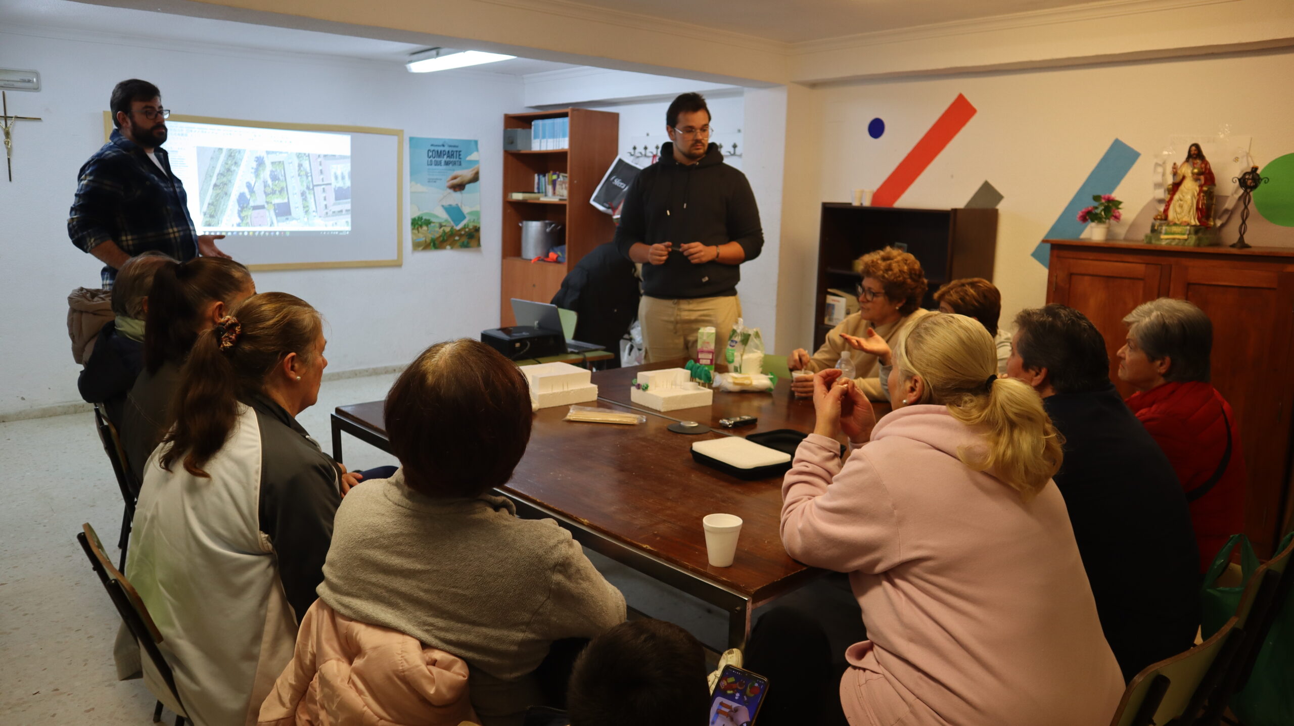 Durante esta cuarta sesión de co-diseño de la renaturalización en Palmeras con el pico Veleta, las vecinas han completado el diseño de la mayoría de patios del barrio colocando árboles y plantas en diferentes zonas. Por espacio y tamaño algunos de los árboles escogidos en un primer momento, se ha decidido cambiarlos por otros para que algunas zonas queden mejor. También se ha tratado la posibilidad de replantar la entrada principal del barrio que, debido al temporal de hace unas semanas, una de las palmeras que daban nombre y era símbolo del barrio cayó.